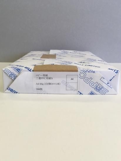 コピー用紙 三菱PPC用紙N A4サイズに、4分割(十字)ミシンを入れた商品です。