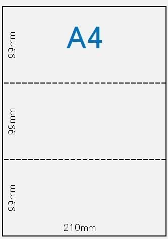 コピー用紙 三菱PPC用紙ReNFSC A4サイズに、3分割(ヨコ2本)ミシンを入れた商品です。