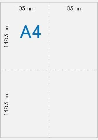 コピー用紙 三菱PPC用紙ReNFSC A4サイズに、4分割(十字)ミシンを入れた商品です。