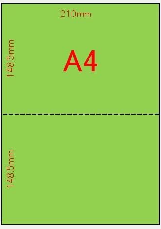 色上質紙A4中厚口サイズに、2分割(ヨコ1本)ミシンを入れた商品です。