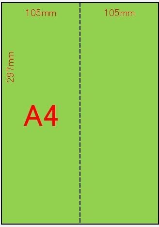 色上質紙A4中厚口サイズに、2分割(タテ1本)ミシンを入れた商品です。