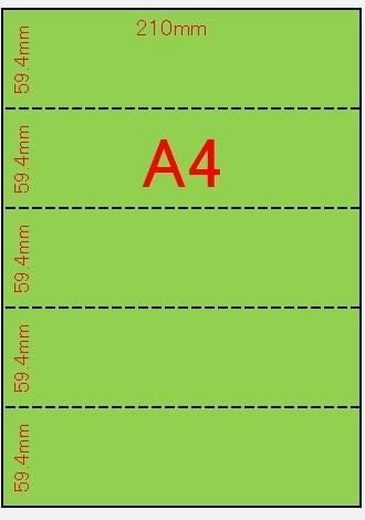 色上質紙A4中厚口サイズに、5分割(ヨコ4本)ミシンを入れた商品です。